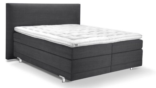 Boxspring Ninety is een heerlijk comfortabel boxspringbed, opgebouwd uit 3 royale lagen: de box, een pocketveringmatras, en de topper. Deze lagen zijn zorgvuldig op elkaar afgestemd en samengesteld uit hoogwaardige materialen, zodat je bed lang mee gaat. Bijzonder aan de Ninety is dat zowel de pocketvering in de box, de pocketvering in het matras en de OptiFoam® HR koudschuim kern in de topper allemaal zijn voorzien van 5 comfortabele zones. Hierdoor vormt het bed zich optimaal naar jouw lichaamscontouren. Zo lig je nog lekkerder en val je sneller in slaap.