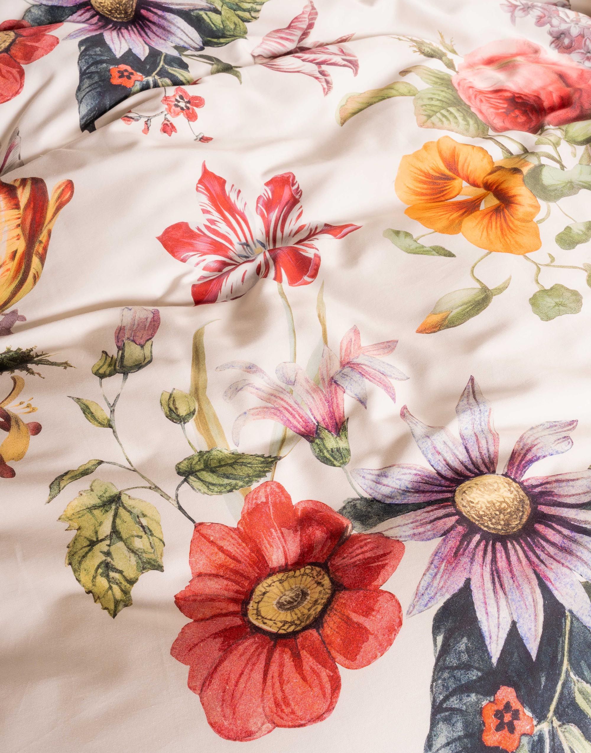 De achterzijde van het overtrek is uitgevoerd in een rustige effen tint, waardoor de veelkleurige bloemenpracht mooi in balans blijft. De extra lange instopstrook over de volle breedte zorgt ervoor dat je je bed makkelijk en strak opmaakt. Inclusief één bijpassende kussensloop.