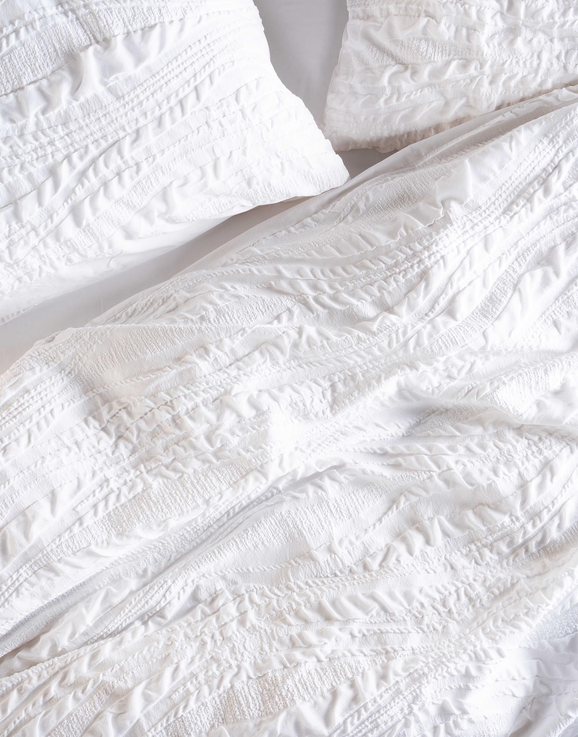 De achterkant van het overtrek is effen wit en vormt een rustige basis die het lijnenspel op de voorzijde mooi laat uitkomen. De extra lange instopstrook over de volle breedte zorgt ervoor dat je je bed makkelijk en netjes opmaakt. Het overtrek wordt geleverd met bijpassende kussensloop.