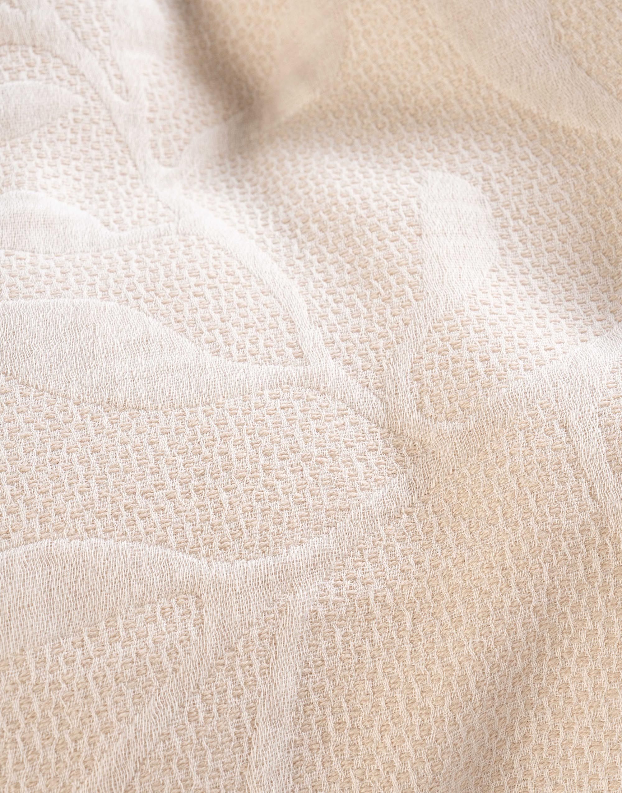 Deze uitvoering in de kleur Vanilla is uitgevoerd in een zachte, beige tint die het organische lijnenspel een warme en vriendelijke uitstraling geeft. Het overtrek is gemaakt van 100% katoen: een natuurlijk materiaal dat zacht aanvoelt, goed ademt en comfortabel slaapt in elk seizoen. Dankzij de prettige kwaliteit blijft de stof bovendien lang mooi.