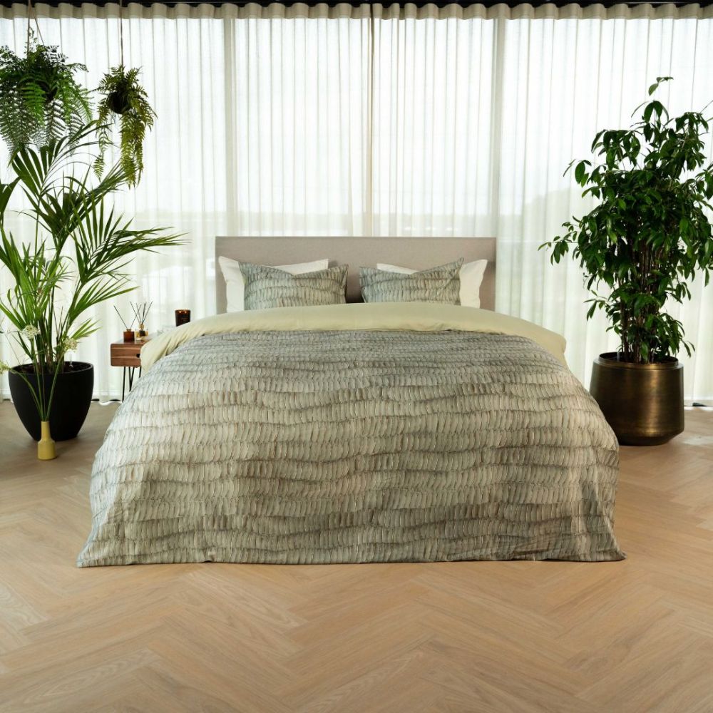 Dit dekbedovertrek is gemaakt van katoen-satijn: een luxe en zachte stof die bekendstaat om haar subtiele glans en soepele gevoel. Het combineert de natuurlijke ademende eigenschappen van katoen met een satijnweving. Al onze dekbedovertrekken hebben een totale lengte van 260 cm, waardoor deze perfect passen over lange dekbedden en extra instopruimte biedt.