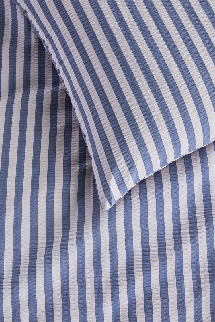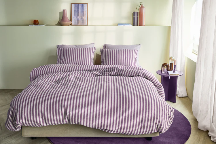 - Seersucker heeft een luchtige, kreukvrije structuur die nauwelijks aan de huid plakt en zorgt voor goede ventilatie. Ideaal tijdens warme nachten of wanneer je het snel warm hebt, terwijl je toch comfortabel slaapt. Je wordt wakker onder een fris en luchtig overtrek dat zacht en aangenaam aanvoelt.