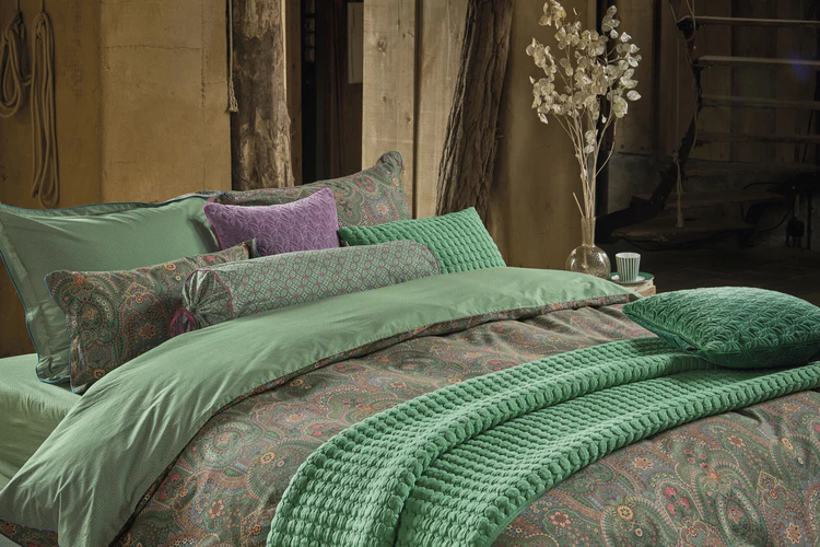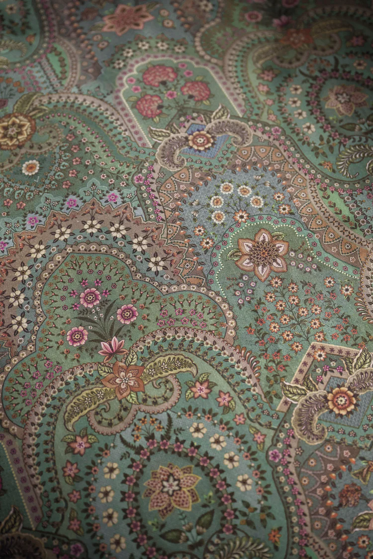 Het Little Jabali dekbedovertrek van Pip Studio heeft een zeer verfijnd dessin. Het dessin is opgebouwd uit heel veel kleine bloemetjes en blaadjes die samen een patroon van decoratieve boogjes maken. Sla je het overtrek om, dan heeft de achterzijde een sterrenprintje. Dankzij de fijngeweven 100% katoenperkal stof voelt het overtrek stevig en crispy aan en is het zachter en fijner dan normaal katoen. Het overtrek en de kussens zijn luxe afgewerkt met een ronde bies en de hoofdkussens hebben een doorgestikte rand rondom. De hoofdkussens hebben gestoffeerde knopen waardoor deze, net als het dekbed, dubbelzijdig gebruikt kunnen worden. Dit geeft een speels mix&match-effect op je bed. Het dekbedovertrek is verpakt in een mooie stoffen bewaarzak, gemaakt van dezelfde stof als het overtrek. De zak is niet alleen herbruikbaar, het geeft ook de mogelijkheid om de print van het overtrek te zien en te voelen. Pip Studio maakt happy products for happy people. Pip Studio ontwerpt en produceert bed-, keuken- en badtextiel in samenwerking met Bedding House. Elk product is een echte eyecatcher: klassiek maar met een speelse twist.