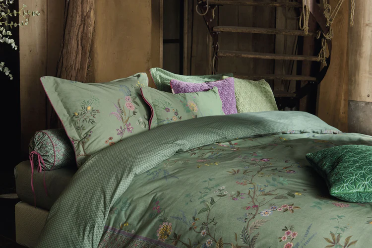 Dekbedovertrek Bustani van Pip Studio bestaat uit sierlijke takken, waaraan fantasiebloemen, bessen en bladeren groeien. De zijbanen hebben een subtiele geometrische print, waardoor het dekbedovertrek een extra luxe uitstraling krijgt. Sla je het overtrek om, dan heeft de achterzijde een mooi bladerprintje. Dankzij de fijngeweven 100% katoenperkal stof voelt het overtrek stevig en crispy aan en is het zachter en fijner dan normaal katoen. Het overtrek en de kussens zijn luxe afgewerkt met een doorgestikte rand en een ronde bies aan beide zijdes. Door de unieke striksluiting kunnen de kussens, net als het dekbed, dubbelzijdig gebruikt worden. Dit geeft een speels mix&match-effect op je bed. Het dekbedovertrek is verpakt in een mooie stoffen bewaarzak, gemaakt van dezelfde stof als het overtrek. De zak is niet alleen herbruikbaar, het geeft ook de mogelijkheid om de print van het overtrek te zien en te voelen. Pip Studio maakt happy products for happy people. Pip Studio ontwerpt en produceert bed-, keuken- en badtextiel in samenwerking met Bedding House. Elk product is een echte eyecatcher: klassiek maar met een speelse twist.