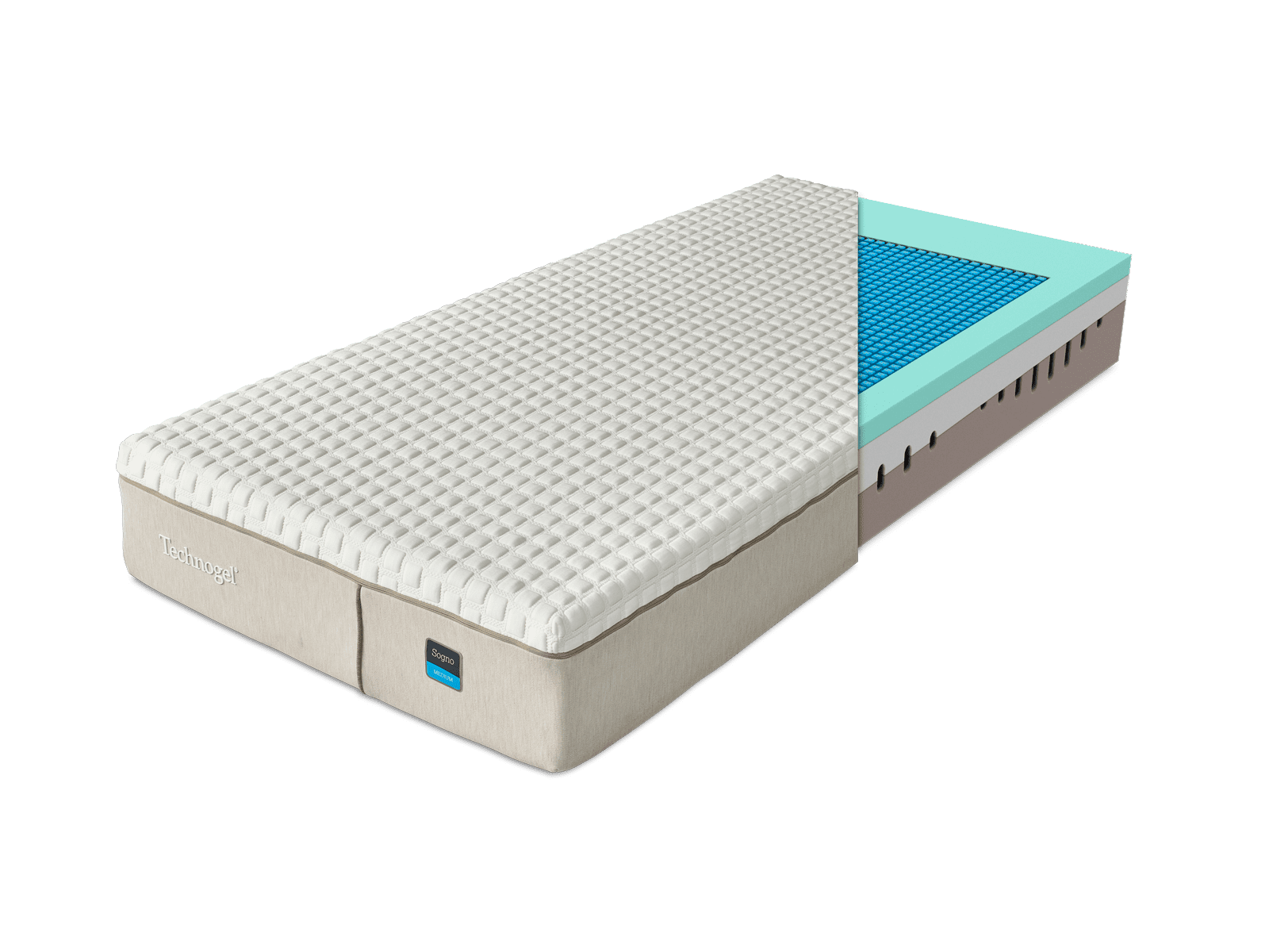 De extra dikke 1,7 cm Technogel®-laag met geïntegreerde bekkenzone werkt perfect samen met de asymmetrisch geplaatste en ventilerende schuimlagen.